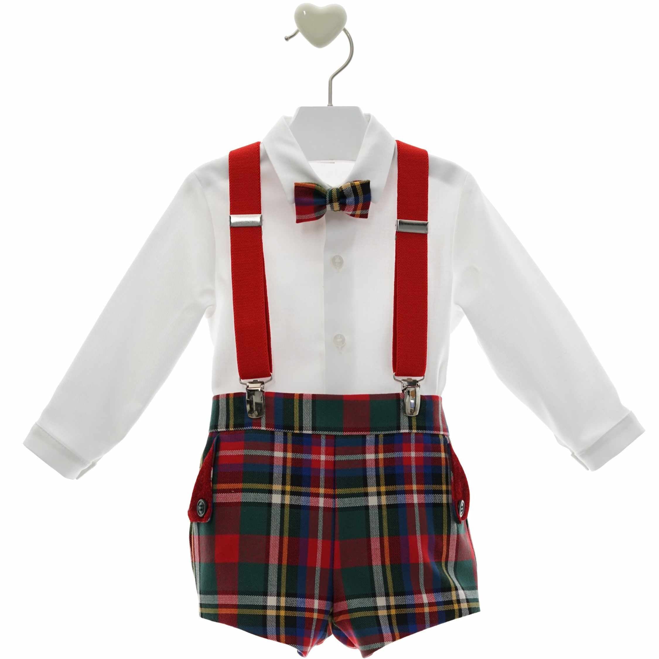 BOYS TARTAN SHORT WITH SUSPENDER SHIRT SET MARILYN