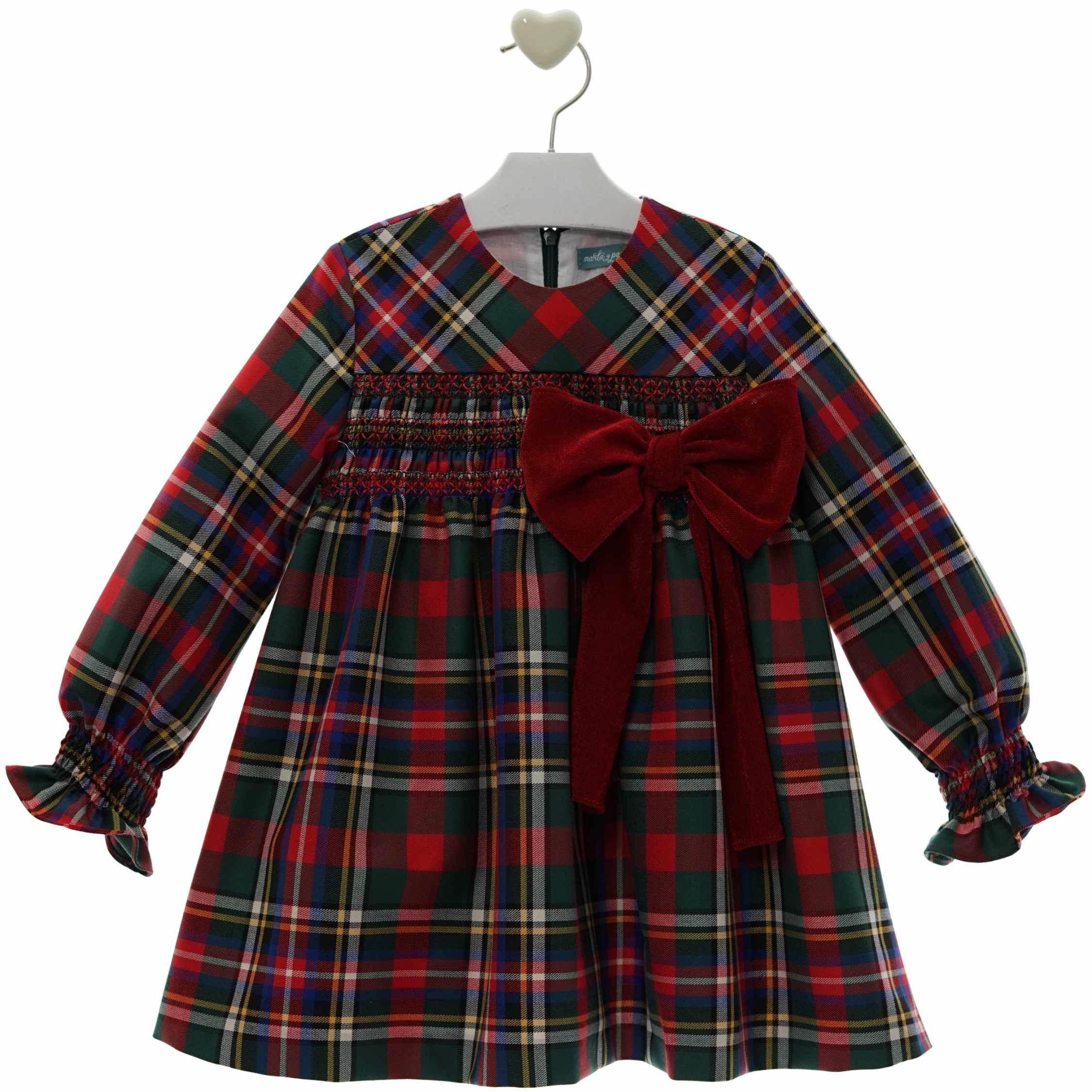 GIRL TARTAN WITH VELVET RED BOW DRESS MARILYN