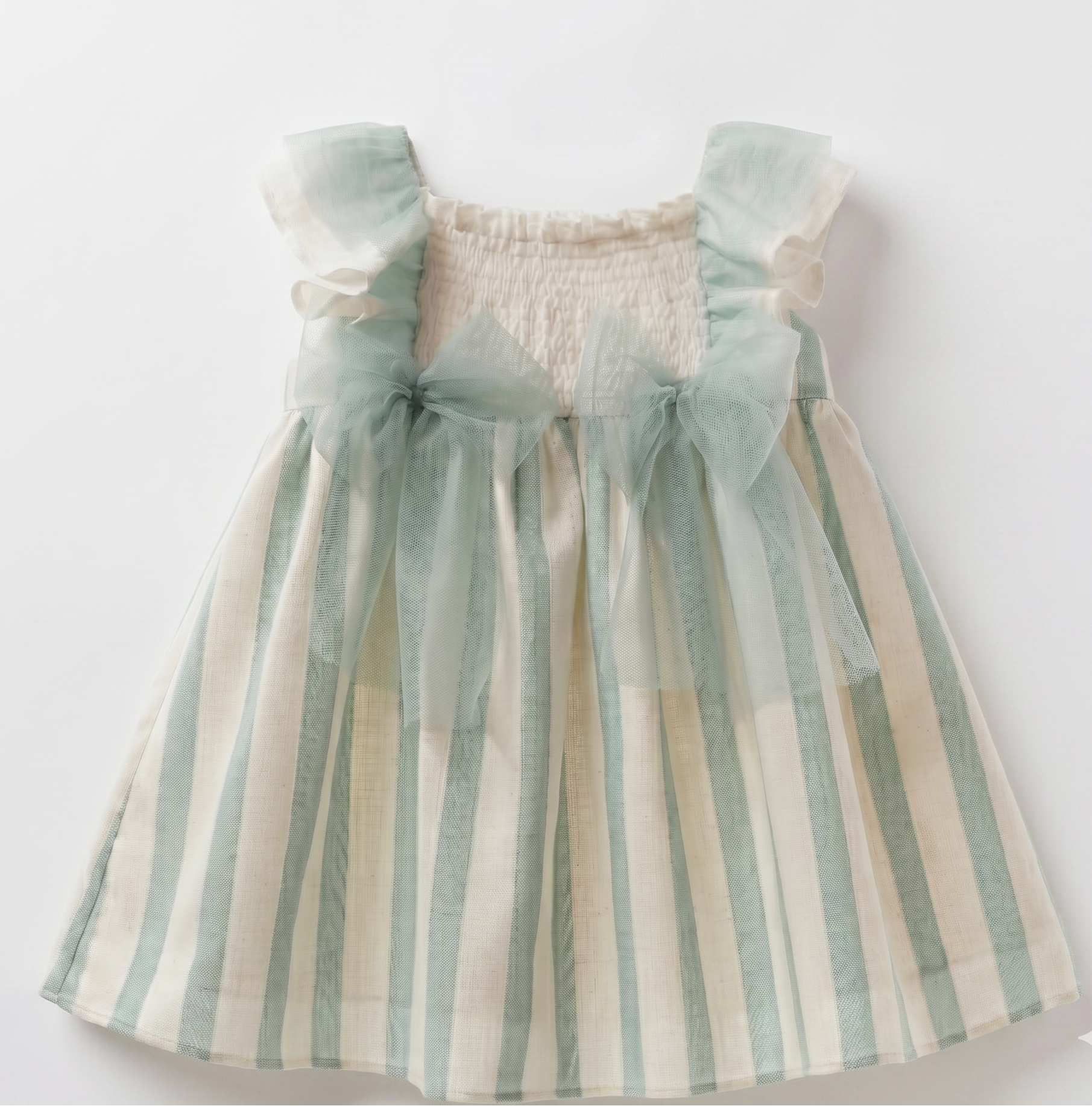 GIRLS STRIPED AND TULLE BOWS DRESS TRIESTE