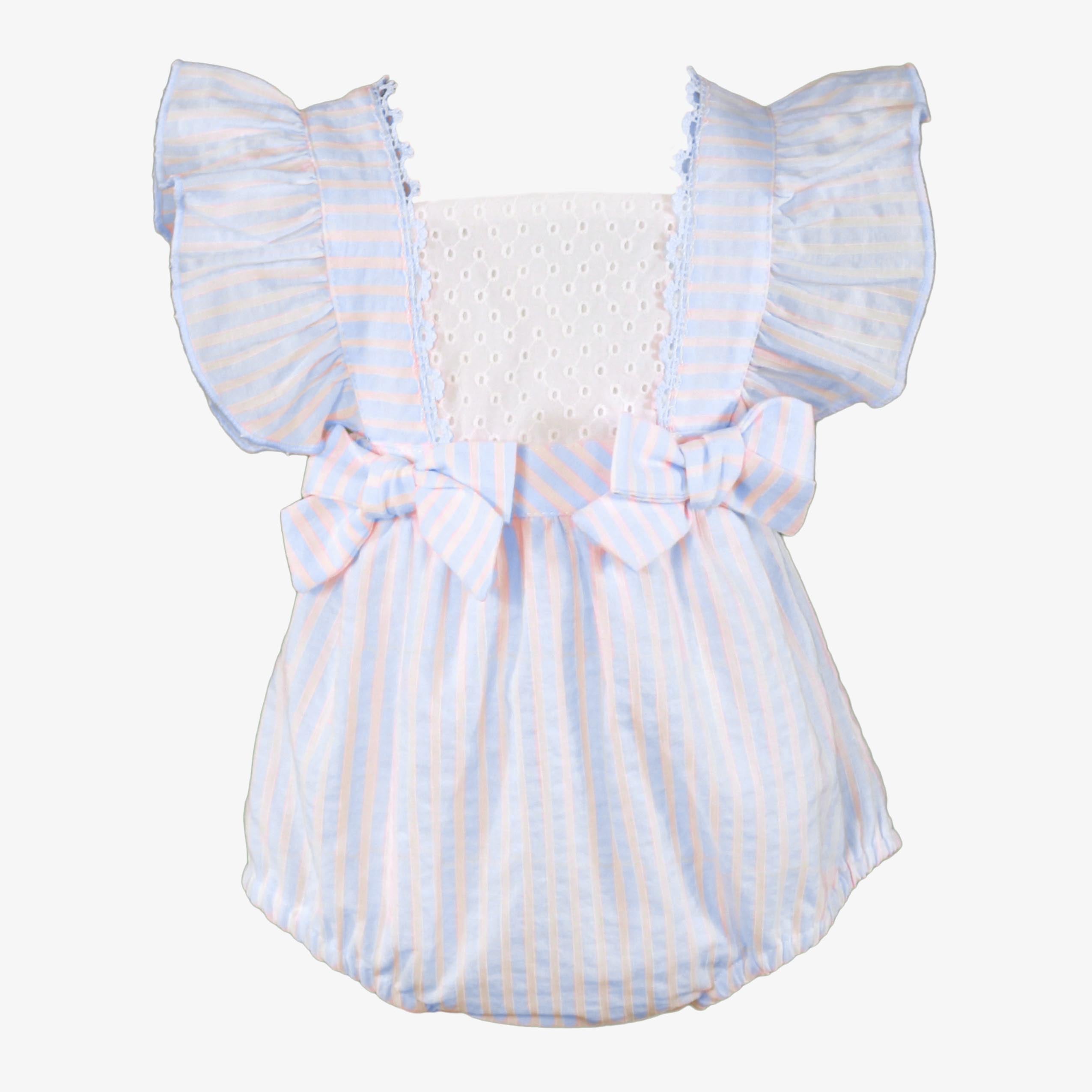 BABY GIRLSTRIPED RUFFLE ROMPER