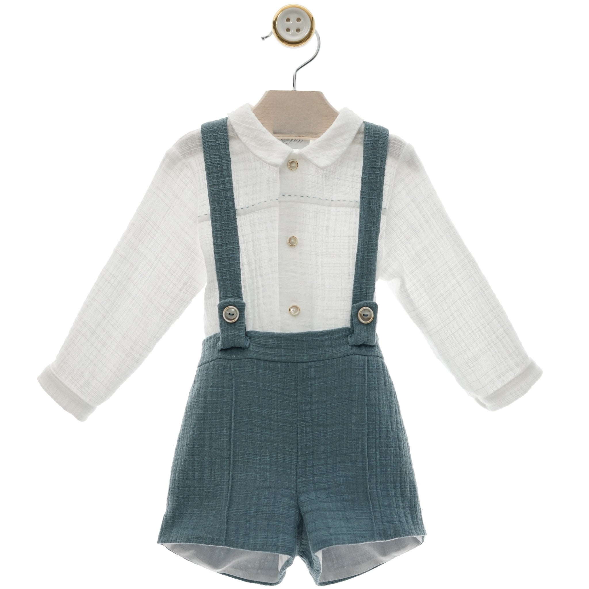 BOYS SAGE GREEN SHORT WITH SUSPENDERS AND SHIRT SET DAMASCO