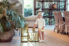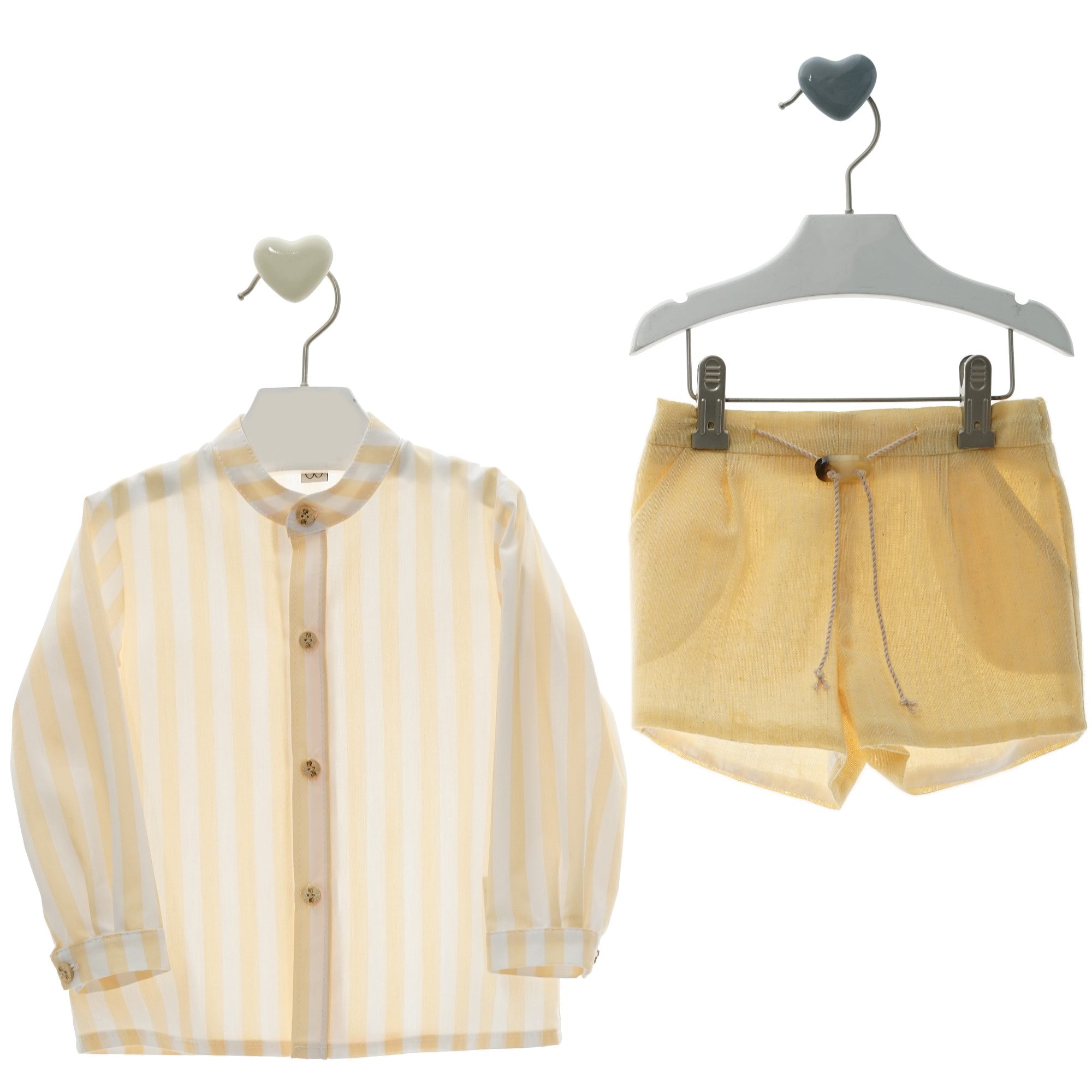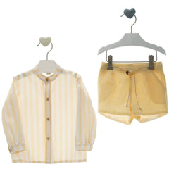 BOYS STRIPES MAO COLLAR SHIRT AND SHORT PANTS SET ZODIACO