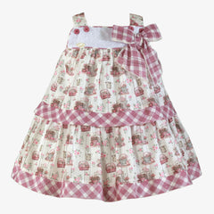 GIRL BASKETS WITH FLOWERS AND PLAID DRESS