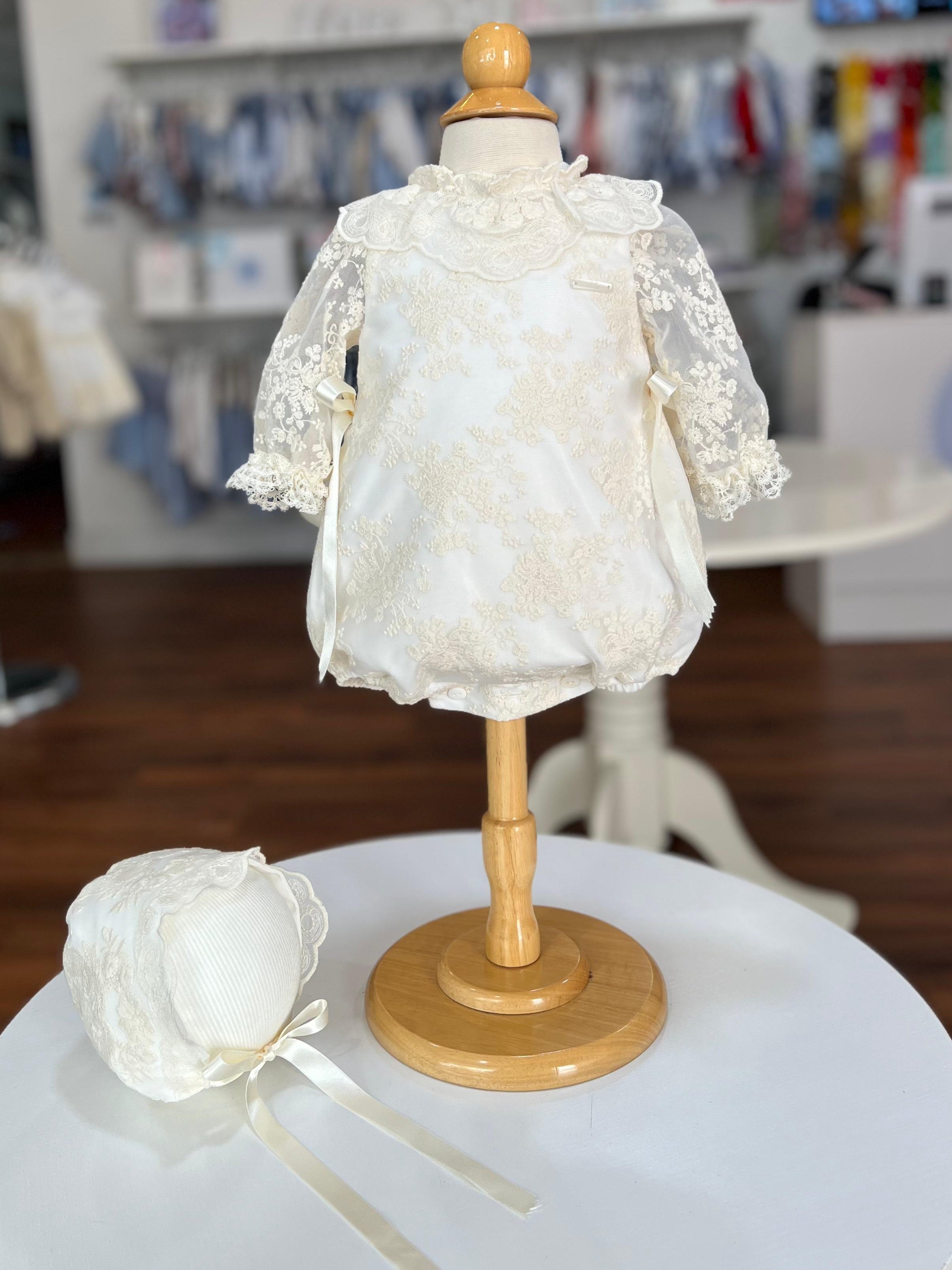 GIRL DELICATE LACES ROMPER WITH BONNET