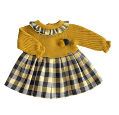 GIRL PLAID POM POMS AND RUFLLE COLLAR DRESS